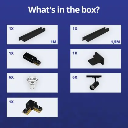 | Fabrikantnaam | Complete L shaped 1-Phase Track Set Black incl. 6x Spot fixture + GU10 2700K 3W Dim - 1 x 1,5 meter | |