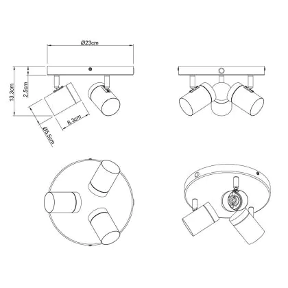Geschikt voor 3x GU10: Ontworpen voor drie GU10-lampen (max. 35W per stuk), wat zorgt voor een krachtige en gerichte verlichting.