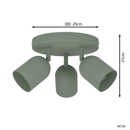 Beschrijving Eglo Plafond Spot Tilston Staal Groen | Geschikt voor 3x E14