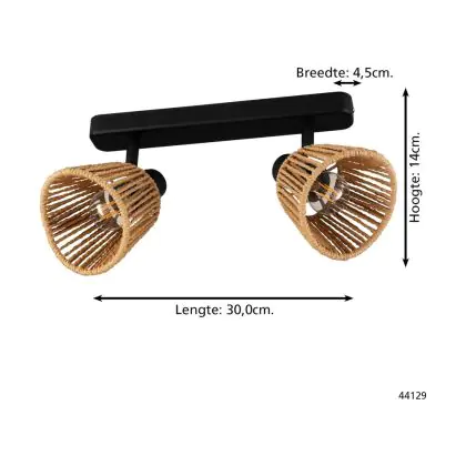 Beschrijving Eglo Plafondlamp Keelby Staal Zwart | IP20 - Geschikt voor 2x E14