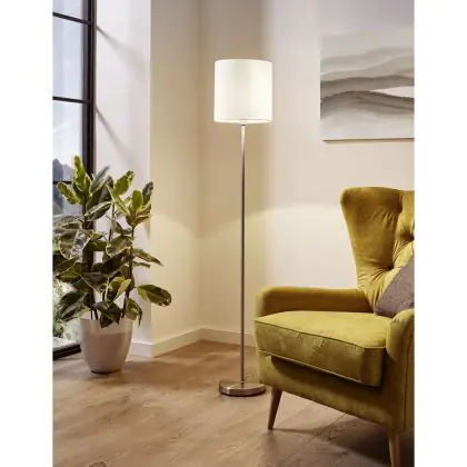 Beschrijving Eglo Vloerlamp Pasteri Staal Satijn Nikkel Wit | IP20 - Geschikt voor 1x E27