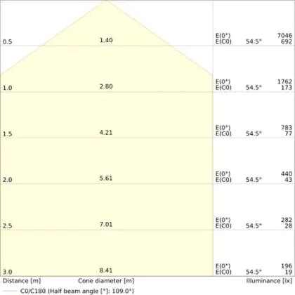 De lichtopbrengst (Lumen), geeft weer hoe krachtig het uitgestraalde licht is. Dit is belangrijk om te weten om de juiste sfeer te creëren. 0 tot 400 Lumen is bij uitstek geschikt voor accent- of sfeerverlichting. Een hoger aantal Lumen is, afhankelijk van de grootte van de ruimte, beter geschikt als ondersteunende- of basisverlichting. Heb je plafonds hoger dan 4 meter, dan is een lichtopbrengst van minimaal 8000lm aan te raden indien heldere verliching gewenst is (vb. in werkomgevingen).