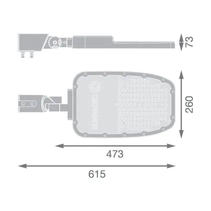Beschrijving Ledvance LED Straatverlichting Area Large RV35ST Aluminium Grijs 90W 12150lm 155X69D - 740 Koel Wit | IP66 - Asymmetrisch