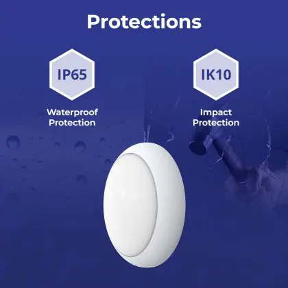 Een belangrijk element van LED plafondlampen is de IP waarde. Dit getal geeft de mate van bescherming aan tegen binnendringen van stof en vocht/water. Vanaf IP65 is het stof- en waterdicht. De IP waarde van deze LED plafondlamp is: IP65 - Stof- en Waterdicht. Ben je op zoek naar een LED plafondlamp voor buitengebruik? Dan voldoet een product met een IP44 waarde (spatwaterdicht) al. Meer baat bij een product met een ander IP waarde? Klik dan hier voor ons complete assortiment aan LED plafondlampen en gebruik het zoekfilter 'IP waarde' aan de linkerkant van de pagina. Let bij het plaatsen van een LED plafondlamp in de buitenlucht ook op de IK waarde (slagvastheid). De IK waarde van deze LED lamp is: IK10 - 20 Joule.