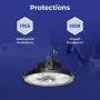Omdat klokarmaturen zoals deze goed zijn in het verlichten van grotere ruimtes, dienen ze geen stof en water door te laten, terwijl ze ook goed tegen een stootje moeten kunnen. Dat alles is voor dit Noxion armatuur geen enkel probleem. Het heeft namelijk de volgende IP waarde: en als IK waarde: . Wat betreft het toepassingsgebied kun je bij LED High-bays denken aan grote productiehallen, magazijnen, loodsen, bouwmarkten, stallen en ruimtes waar grote evenementen/congressen etc. worden gehouden.