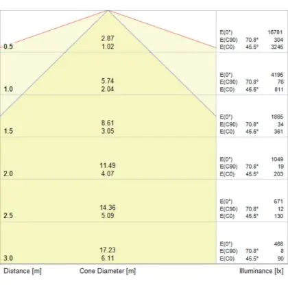 De gradenbundel geeft informatie over hoe breed het licht wordt uitgestraald. Dit zit tussen de 0 en 360 graden (D). Hoe kleiner de hoek, hoe specifieker de lichtbundel is. Over het algemeen is een smalle gradenbundel perfect voor sfeer- of accentverlichting, terwijl een brede gradenbundel ideaal is om grote oppervlaktes te verlichten.