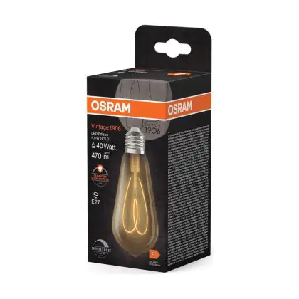 Beschrijving Osram Vintage 1906 LED E27 Edison Filament Goud 4.9W 470lm - 922 Zeer Warm Wit | Beste Kleurweergave - Dimbaar - Vervangt 40W